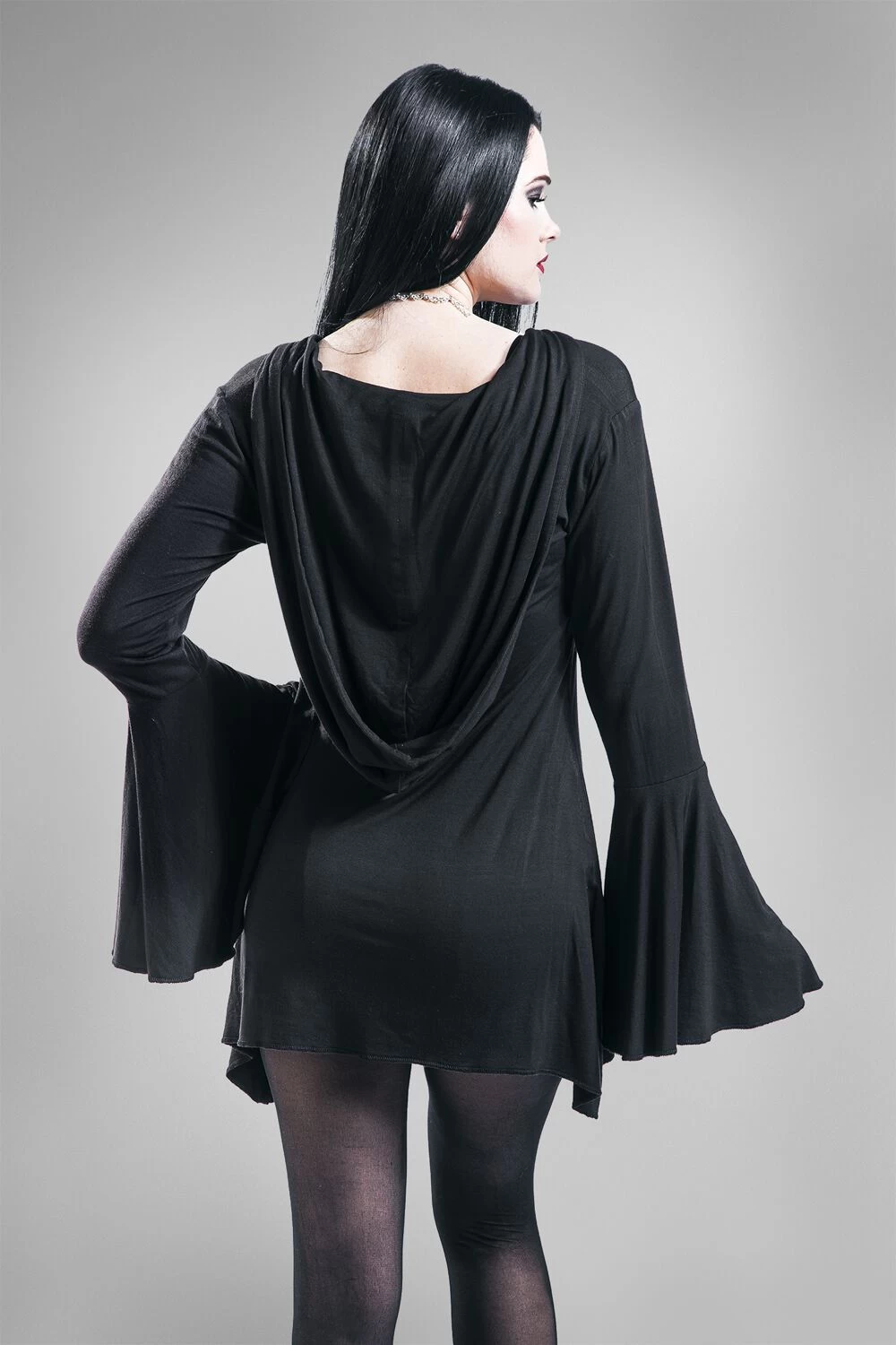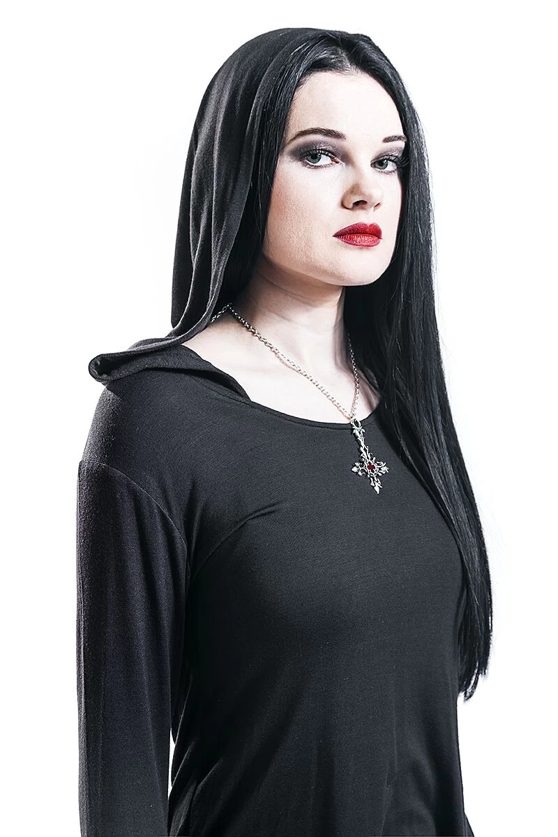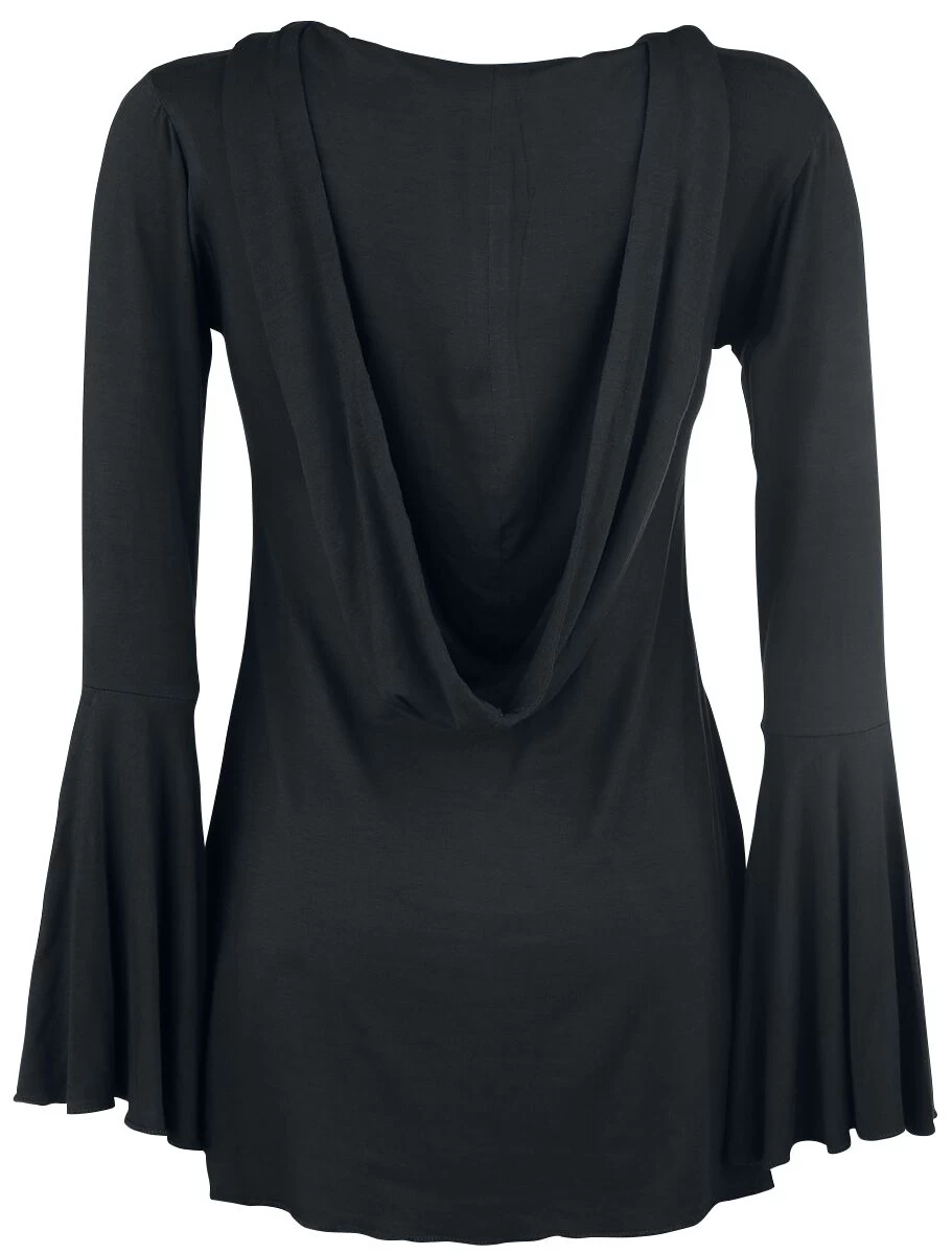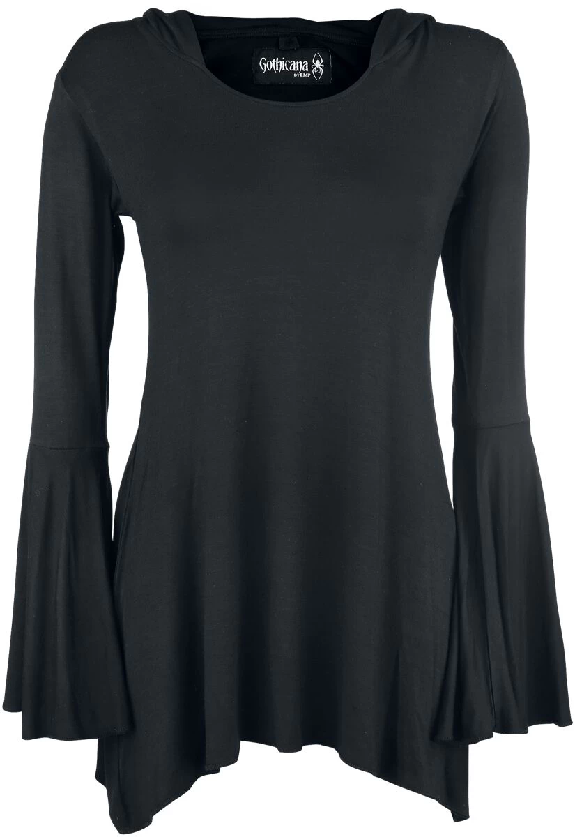 With this long sleeve you are definitely the queen of the night! Big batwing sleeves adorn the shirt. The sides come in form of tails. The Gothicana by EMP shirt also has a big hood, that makes you seem even more mysterious. Very creepy!
