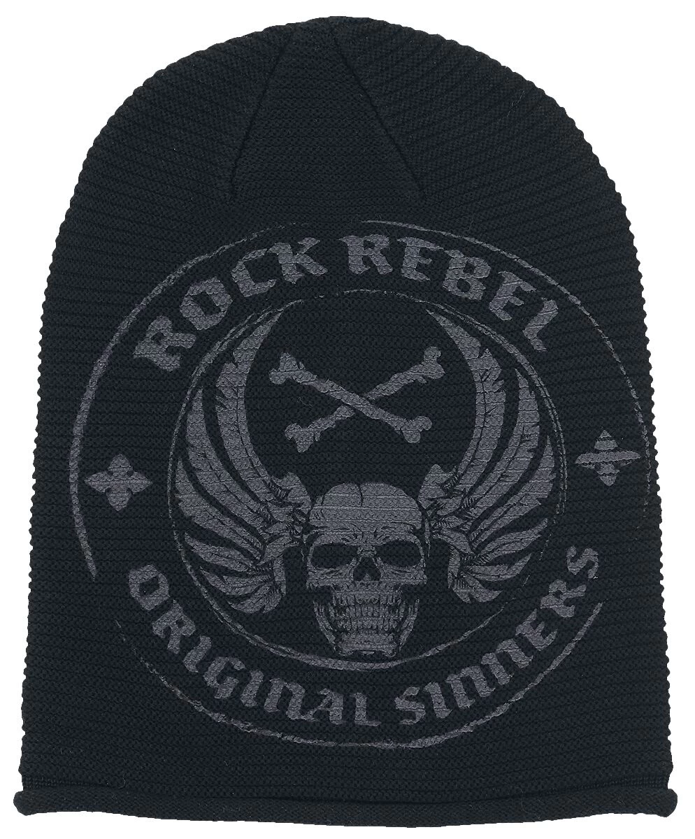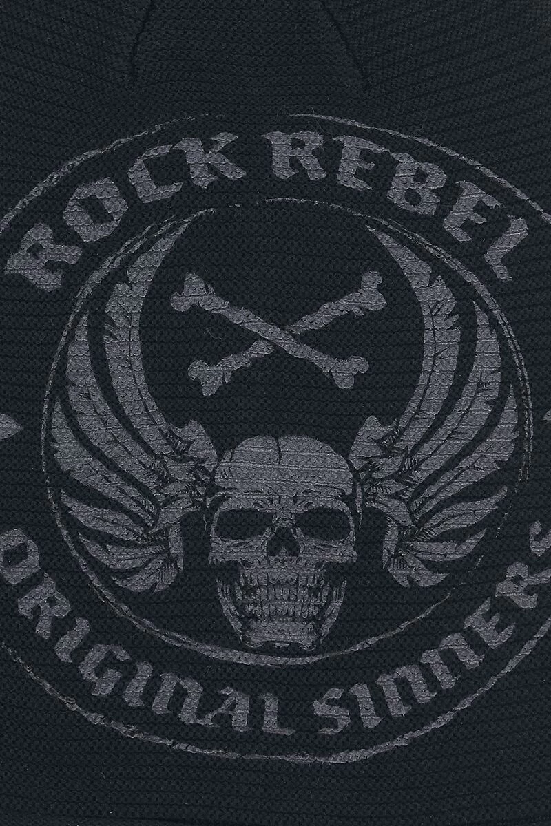 The black beanie from Rock Rebel by EMP is decorated with an all over print that shows the label’s badge. There’s also a skull in the logo and at the side. Amazing!
