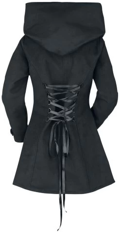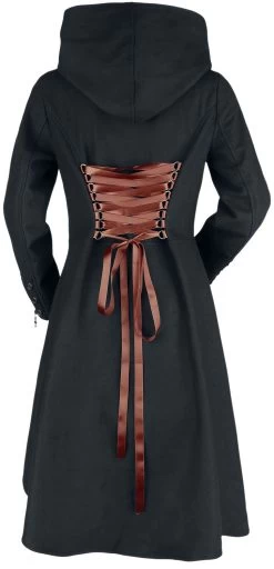 “Gothicana X Anne Stokes – Black Coat With Big Hood And Lacing” Coats Black By Gothicana By EMP
