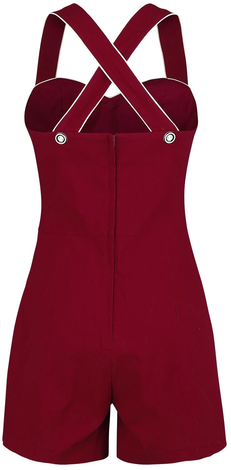 “Eliza Navy Seaside Cross Strap Playsuit” Jumpsuit Red By Voodoo Vixen