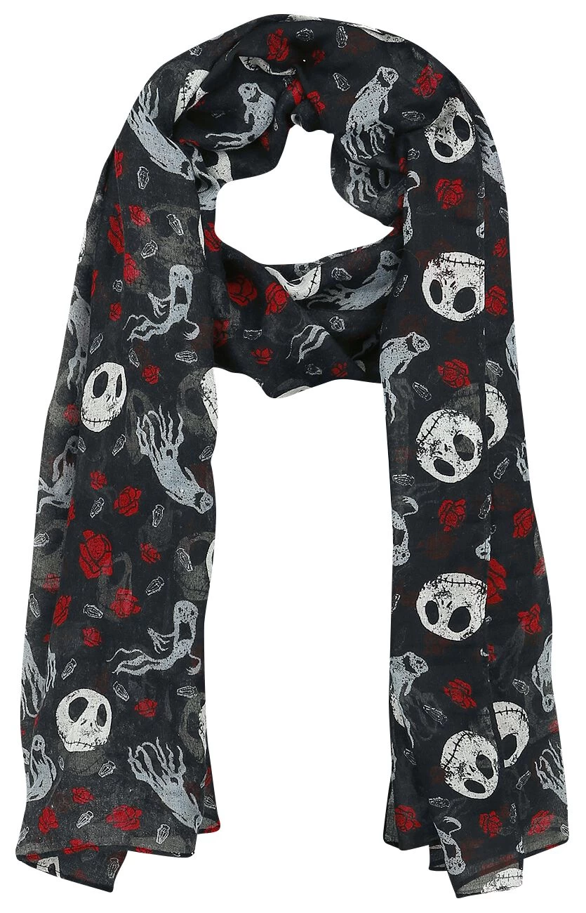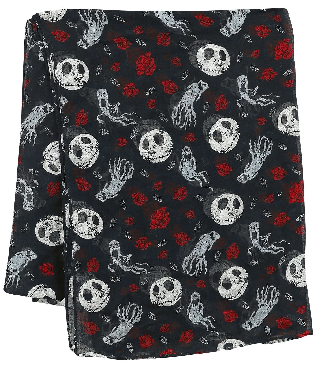– Lightweight scarf with Jack, Ghost and roses in an all-over design