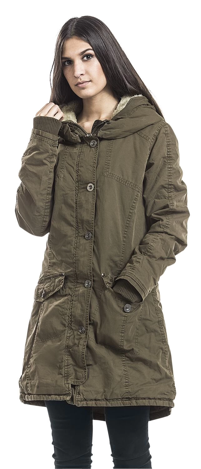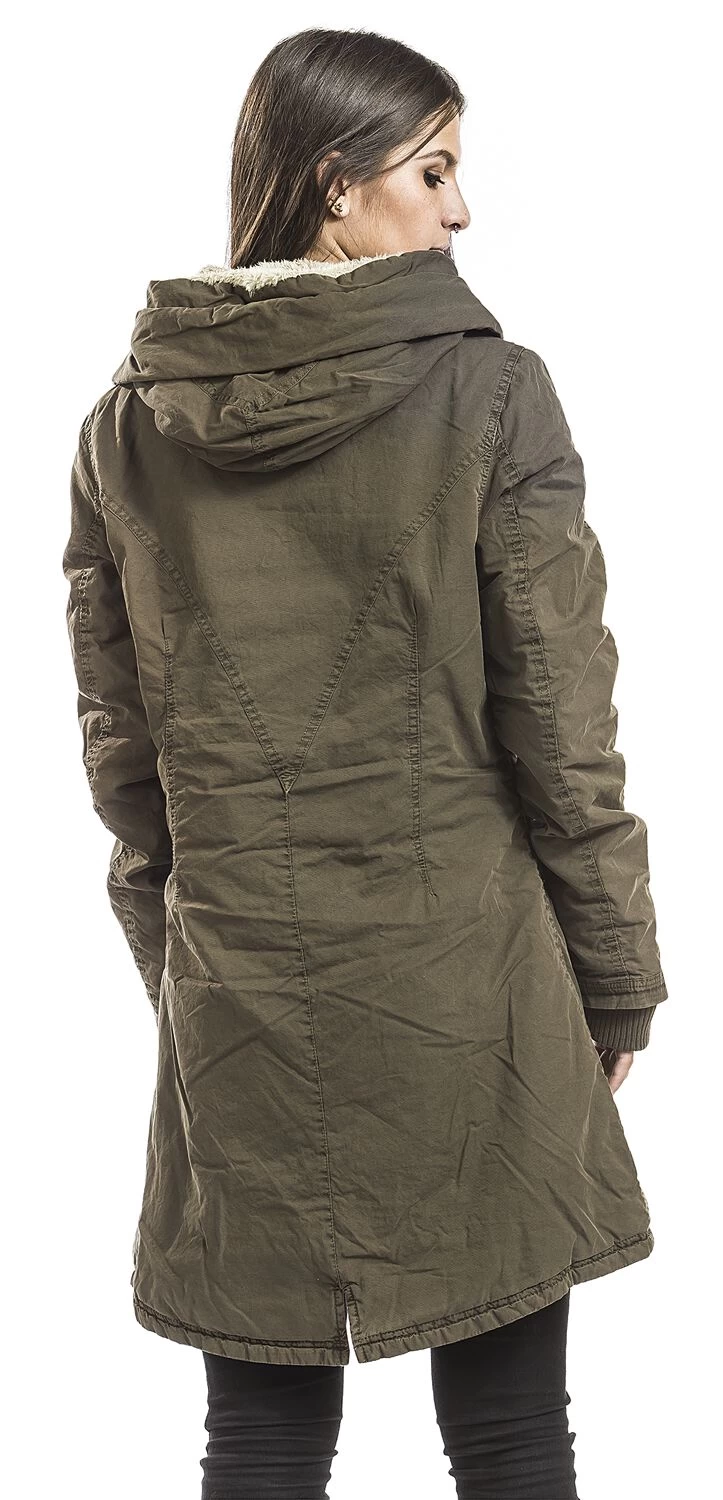 Tired of the cold wind? No problem! With the olive-coloured “Ladies Garment Washed Long Parka” girls jacket you never have to freeze again. The jacket keeps you perfectly warm and makes you look great. Especially the beige teddy lining in the hood is very fluffy – perfectly suitable for all chilly persons out there. The button tape keeps the cold wind from taking its chance.