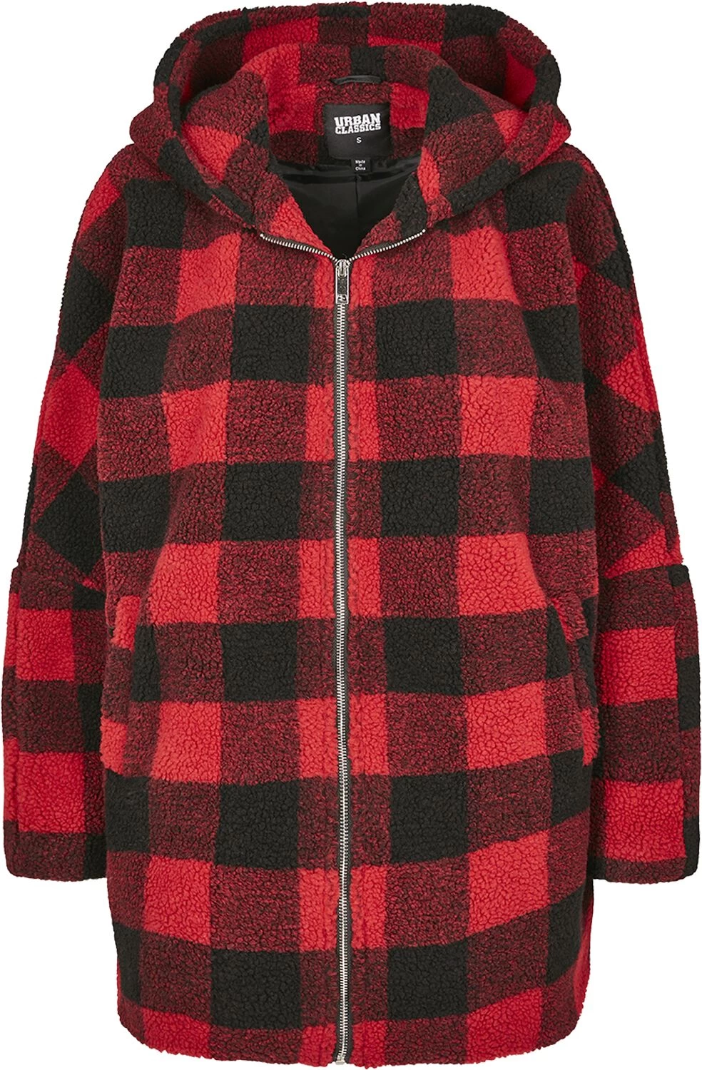 “Ladies Hooded Oversized Check Sherpa Jacket” Winter Jacket Red-black By Urban Classics