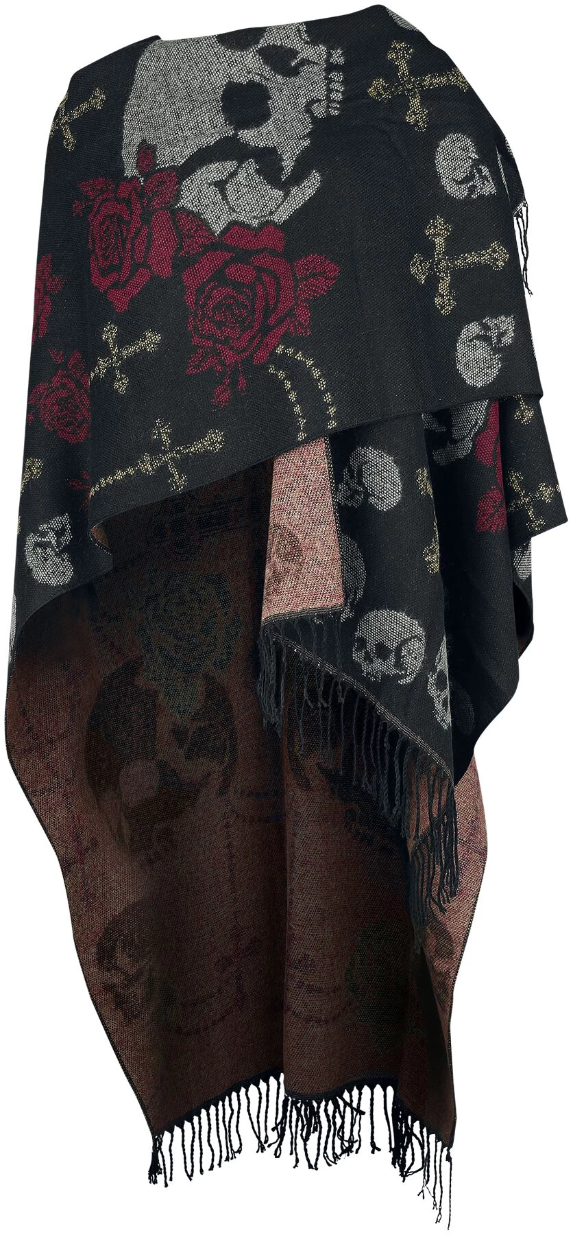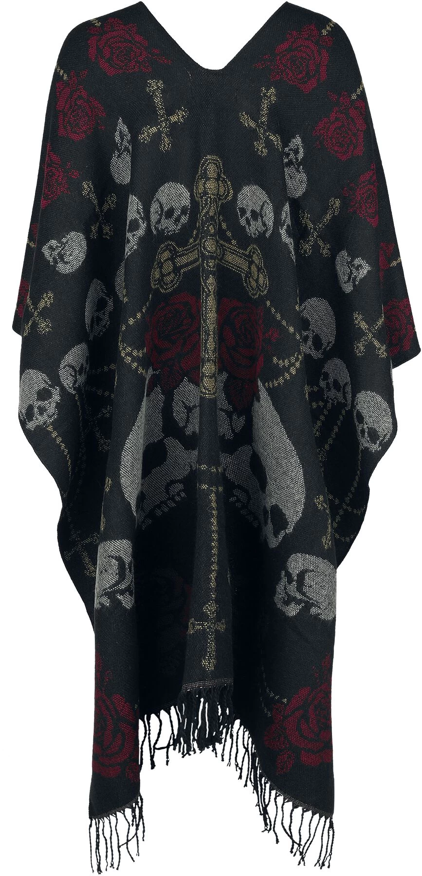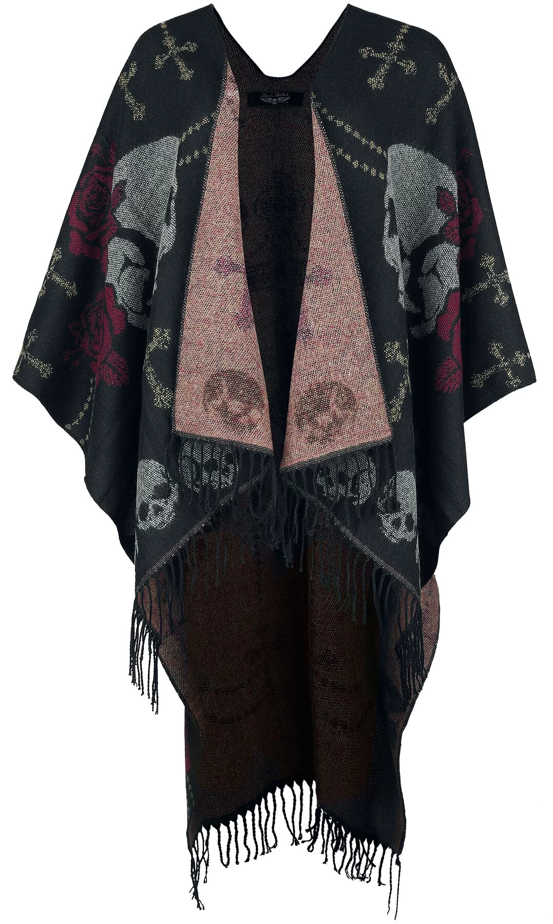 “Skull And Roses Poncho” Cardigan Black By Rock Rebel By EMP