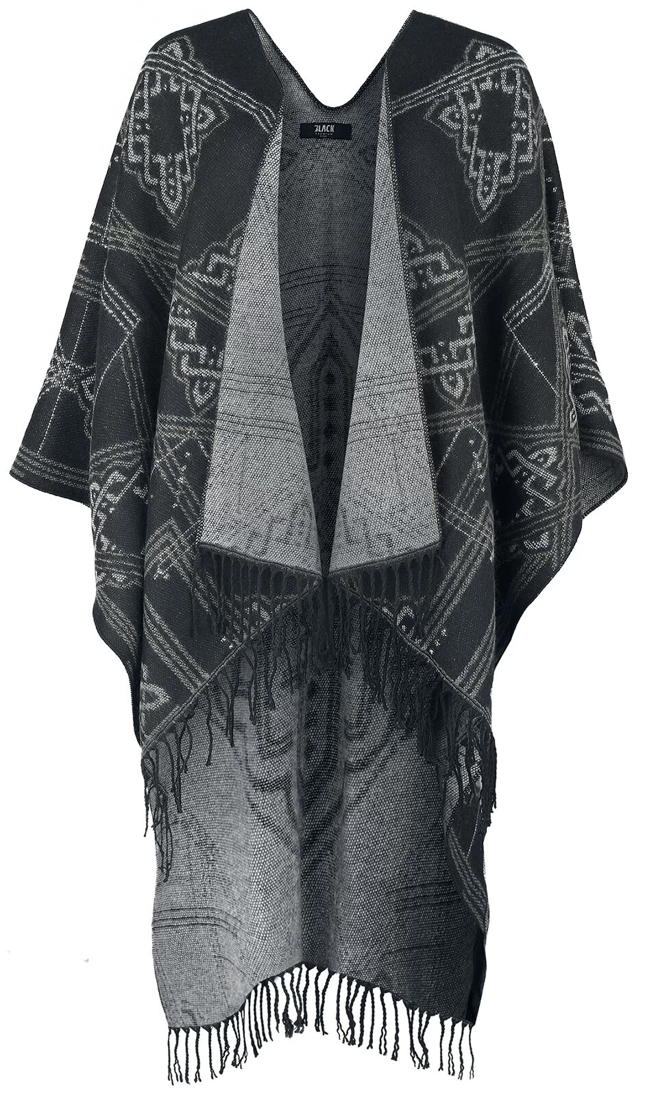 “Soft Poncho With Celtic Decorations” Cardigan Black-grey By Black Premium By EMP