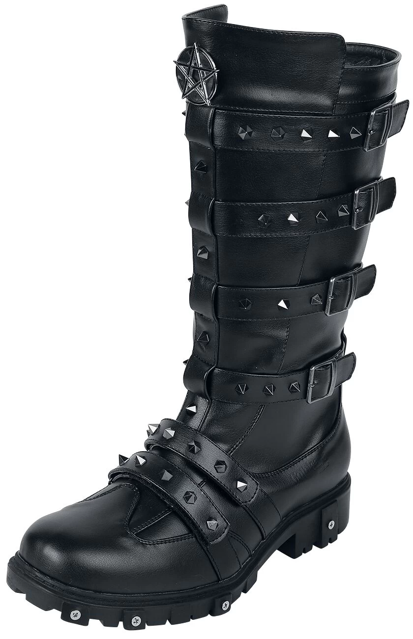 Cinderella’s story is proof that a shoe can change everything. That’s why you should give these black boots from Gothicana by EMP a chance, because these robust kicks with buckles and studs know how to make an entrance. With a heel height of 3.5 cm, you’ll definitely be comfortable while you’re out and about. With a 30 cm-high shaft, the boots can be perfectly paired with dresses, skirts and your especially tight trousers. You can open and close the zip easily, making fast work of putting them on and taking them off. One particularly striking highlight is the pentagram appliqué at the front of the shaft with the potential to change everything.